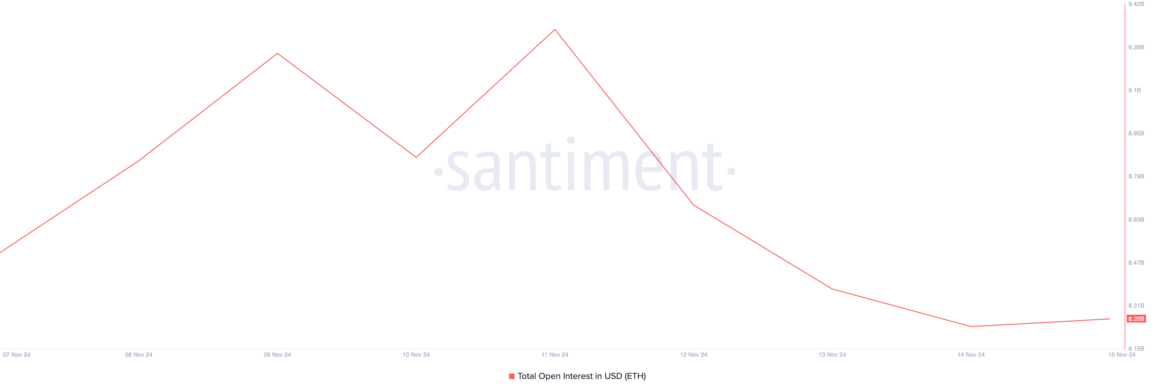 Moreover, Ethereum’s open interest fell to a seven-day low on Thursday, confirming the decline in market activity. Per Santiment’s data, the coin’s open interest, which measures the total number of outstanding contracts in the derivatives market, is now at $8.26 billion. It has plummeted by 12% since Monday.