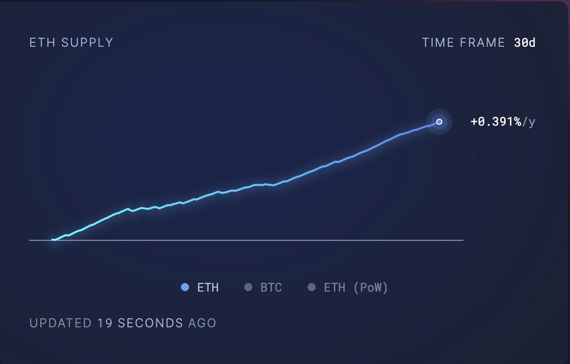 Data from Ultrasoundmoney shows that, over the past 30 days, an additional 38,598 ETH — valued at over $98 million at current market prices — has been added to Ethereum’s circulating supply.