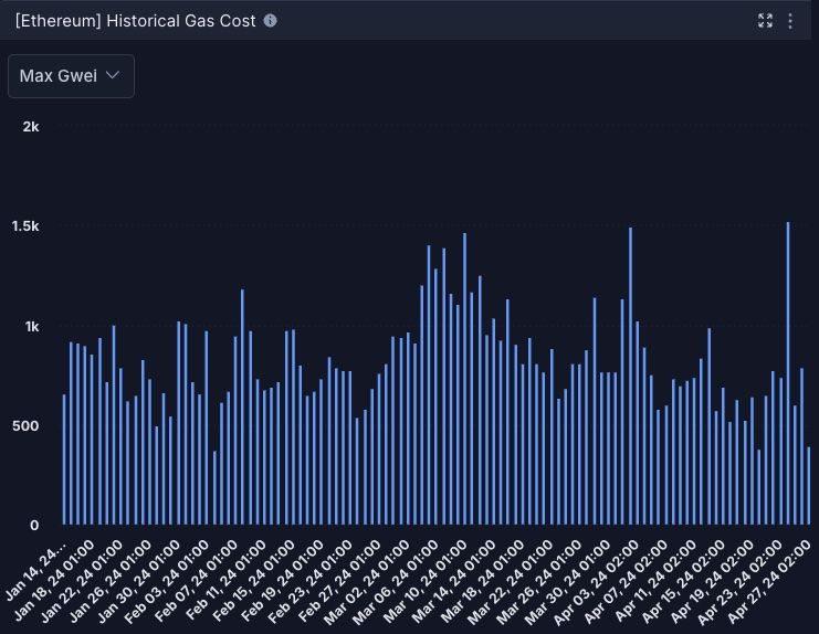 SponsoredThis decline follows a peak at $15.21 in March, during which Ethereum experienced strong price performance and an uptick in demand.