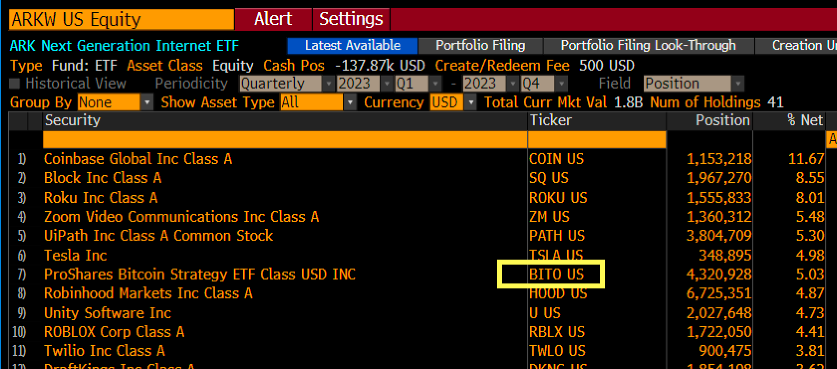 “Just like that, ARK is now the second biggest holder of BITO, although again this is a temporary parking spot,” he said before adding that institutions generally use highly liquidity ETFs for transitions like this.