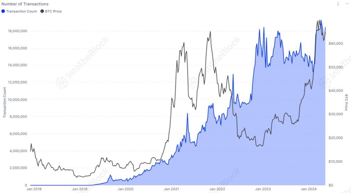 Furthermore, there is no sign that this growth is slowing down soon. The number of USDT transactions has significantly increased since the start of the year and is approaching new highs.