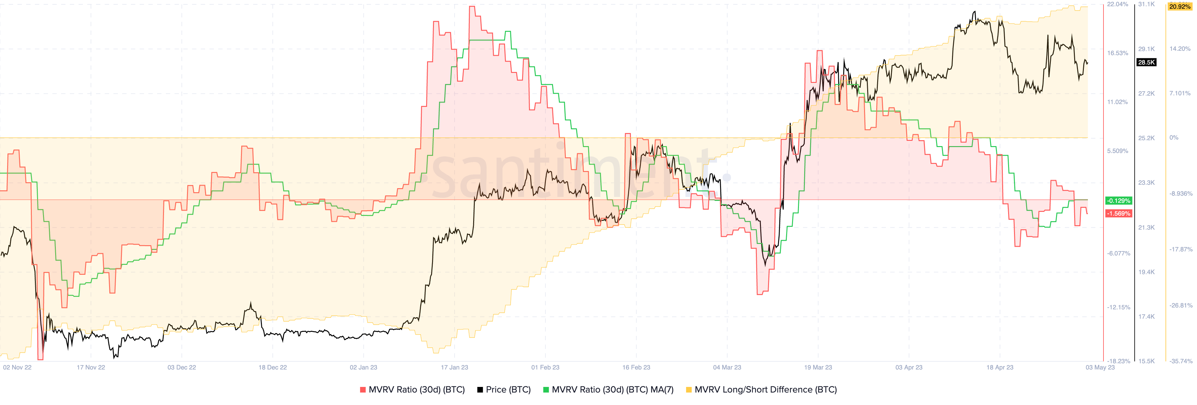 Still, the long-term 365-day MVRV (in yellow) is still sitting at +25%.