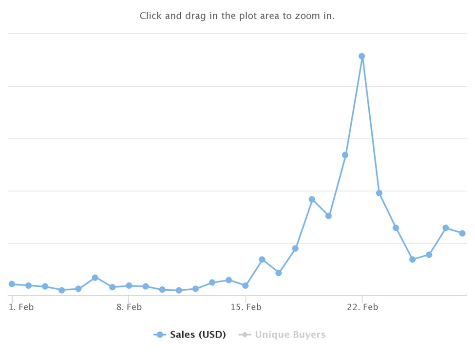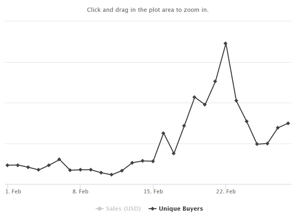 Unique buyers spiked by 321% from January to 80,822 in February 2021.Â