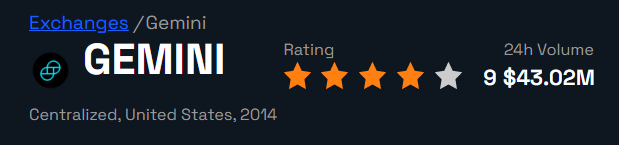 Gemini is one of the biggest exchanges in the U.S. On April 22, the firm had a 24-hour trading volume of $43.2 million, according to BeInCrypto data.