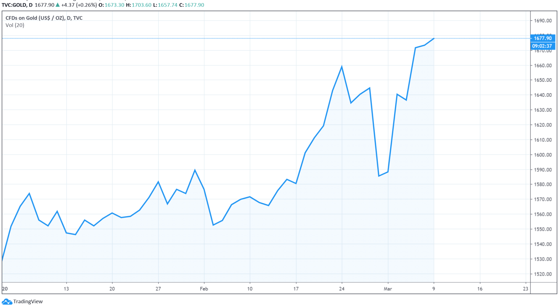If Bitcoin’s price drop wasn’t music enough to Schiff’s ears, news of gold’s own price performance of late will certainly have been. The historical store-of-value asset gained value while many other markets reeled. In fact, gold has had quite a spectacular 2020 amid the chaos of the coronavirus and subsequent market strife.