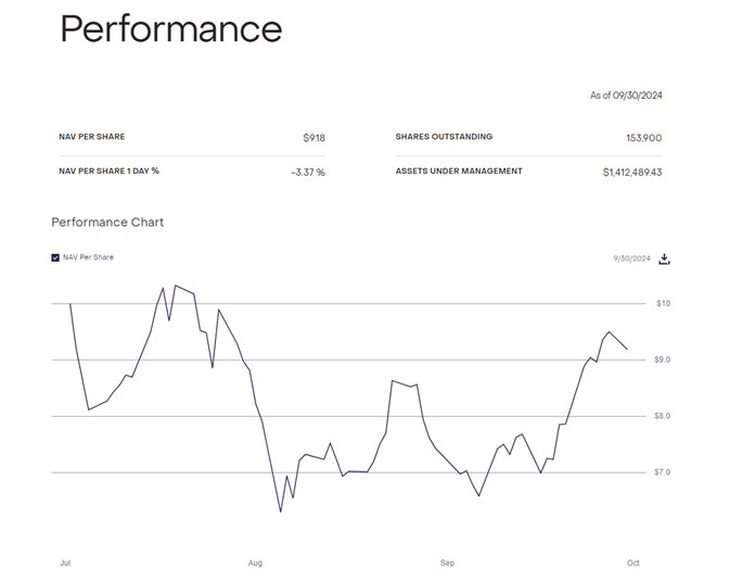 BeInCrypto reported the fund’s launch in mid-July, and its performance has fluctuated since then. Over the last month, the NAV has dropped by 15.6%, and since its July 2, 2024 debut, it has fallen by 26.8%, reflecting the broader market volatility.
