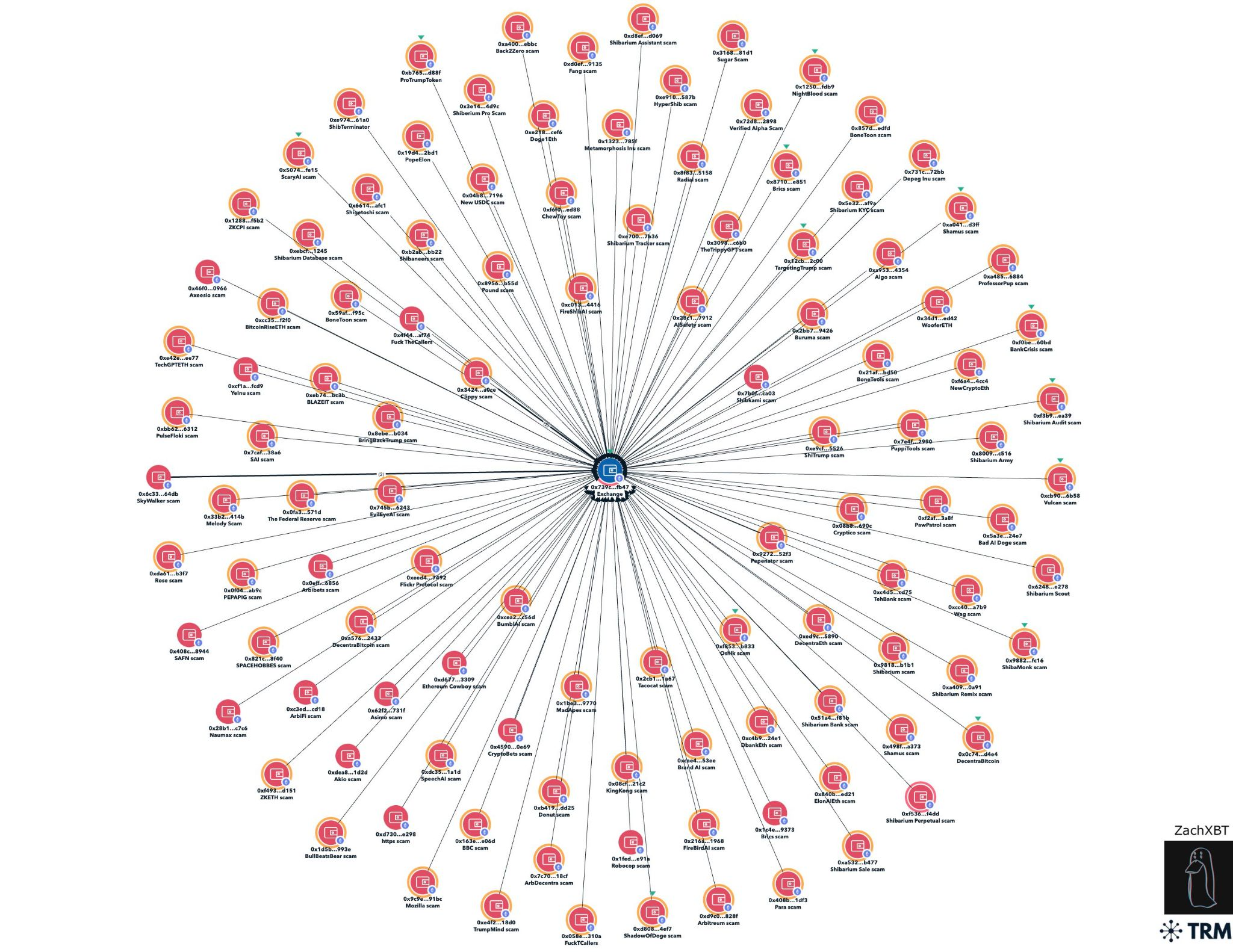 ZachXBT discovered that funds stolen from 114 meme coin scams were being sent to the “exact same deposit address,” 0x739c. The on-chain analyst also suspects that the scammer must have created more meme coins. He says, “These are just ones sent to that deposit address lol.”