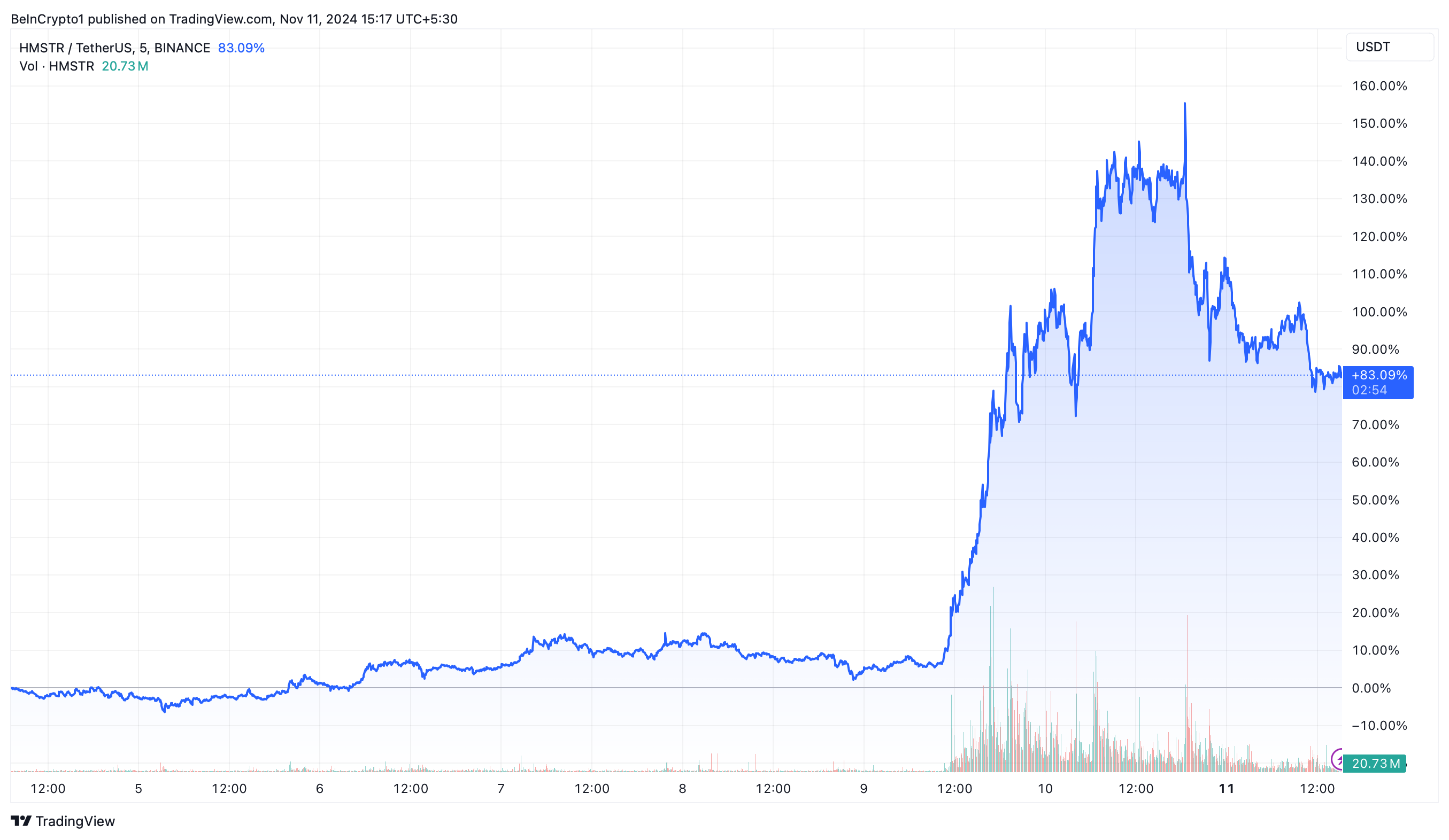 The recent HMSTR gains align with Bitcoin’s rally to an all-time high of $82,000. Positive market trends have boosted HMSTR’s weekly gains by approximately 83% over the last week.
