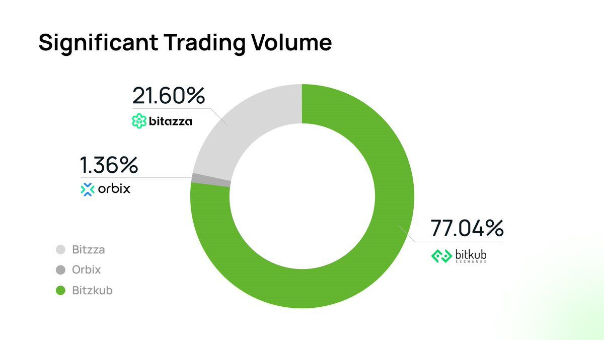 The Bitkub exchange dominates the market with a 77% share. Bitkub has a daily trading volume of around $82 million, according to CoinGecko.