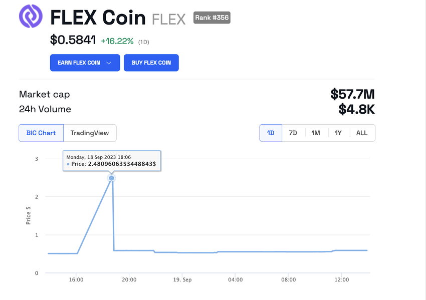The FLEX token price has been subject to volatility since Monday, when it skyrocketed to $2.4809 before subsequently crashing. Overall, it is up by 16.22% in the past 24 hours, trading at $0.5841 during press time.