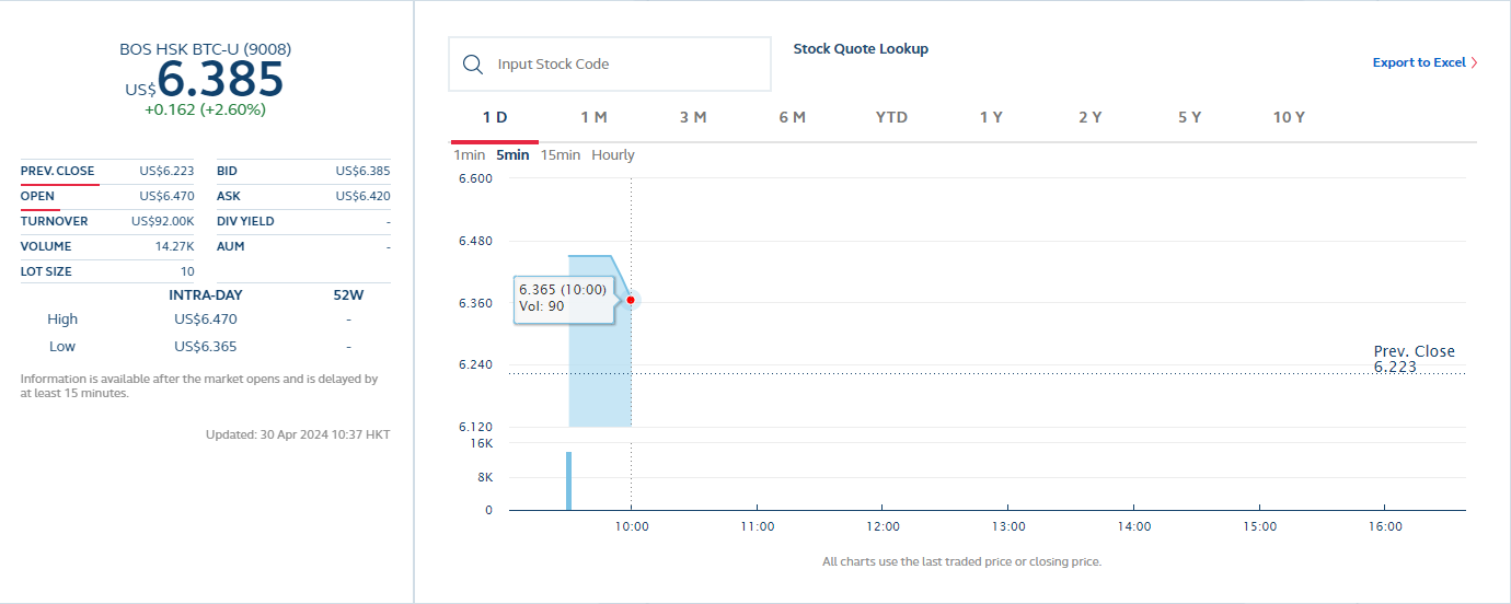 The opening prices on the Hong Kong Stock Exchange were promising. BOS HSK BTC and BOS HSK ETH opening prices are HKD 50.540 and HKD 25.340, respectively. Their USD counterparts also saw a robust start at $6.470 and $3.238.