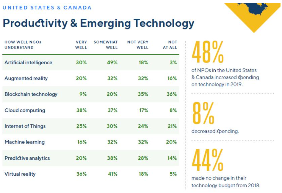 According to the Global NGO Technology Report, which interviewed over 5,000 non-profit organizations around the world, digital currency donations represent 2 per cent of payment methods used in the US and Canada, which is up by 1 per cent from the previous year. It was also found that they reach 5 per cent in Africa, 4 per cent in Asia, 2 per cent in Australia and Europe, and 1 per cent in Latin America.
