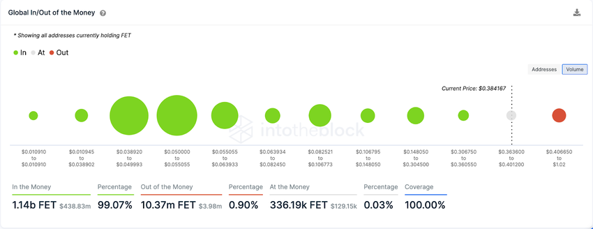 As things stand, more than 99% of FET holders are in profit. This means holders are not pressured to avert losses at current prices.