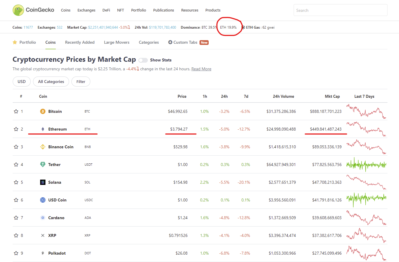This network is steadily increasing its share of the cryptocurrency market, and at the press time, its dominance is 20%, according to CoinGecko. Moreover, ETH’s market cap of $450 billion already represents more than 50% of BTC’s market cap of $888 billion.
