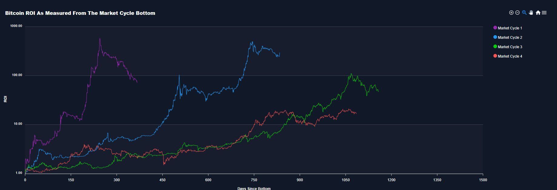 Historical analysis indicates that each successive BTC cycle has been longer than the previous one, and the significance of the four-year halving rhythm is slowly diminishing. Moreover, the ROI over successive cycles is also diminishing, so hodlers should expect lower returns over time.
