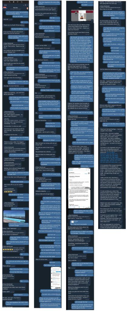 Shaun is presenting a legal threat to Ran, claiming to have collected more than 80 documents tying him to the project. In the first part, it looks like Ran is actually admitting to a couple of accusations, including fraud. He claims that the South African Law Enforcement cannot do and will not do anything to him, or, as he says, “people get away with murder here.”