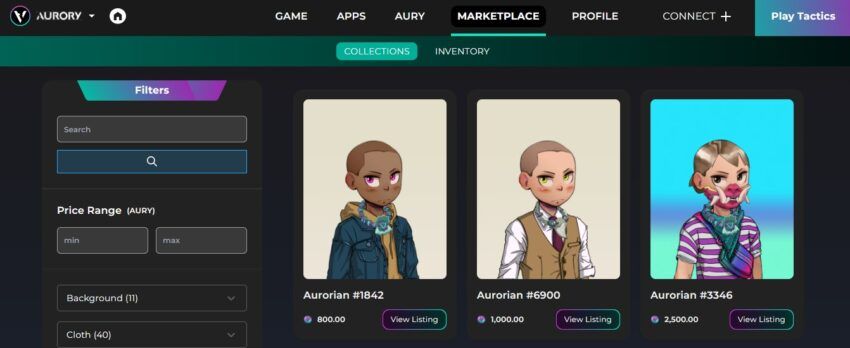 - Aurorians & Tacticians: NFT characters that can be traded and boost rewards in the game