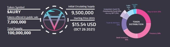 AURY also serves as the governance token, allowing holders to vote on game decisions. Lastly, AURY has a circulating supply of 9,600,000 and a maximum and total supply of 100 million.