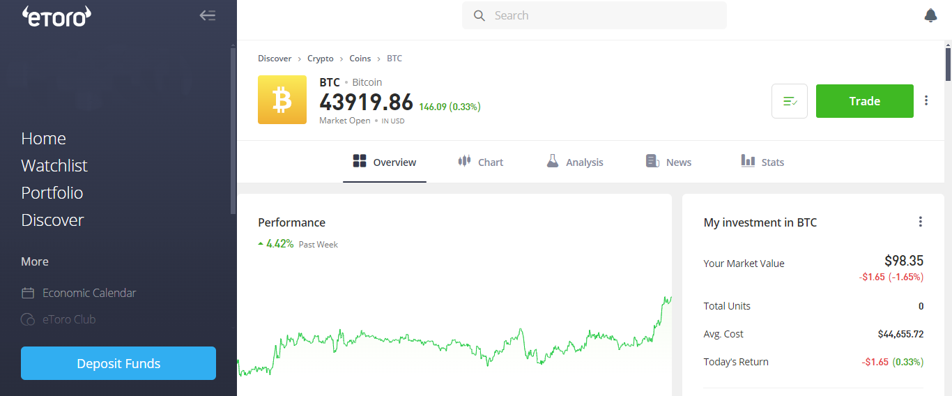- Pros of using eToro to trade Bitcoin