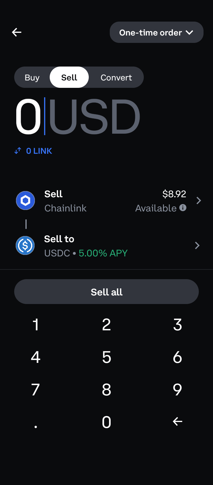 2. Secondly, under chainlink, press “Sell,” then choose the amount you want to sell.