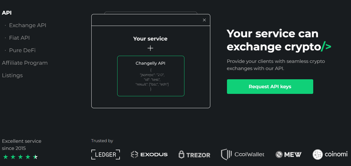 Changelly’s APIs allow you to integrate its services into your business. A number of businesses, such as Trezor and Ledger, have already integrated their services. Some of their services include exchange or conversion, fiat on-ramps, and DeFi services. Many of these services are useful for wallet integrations but can also be used for other things.
