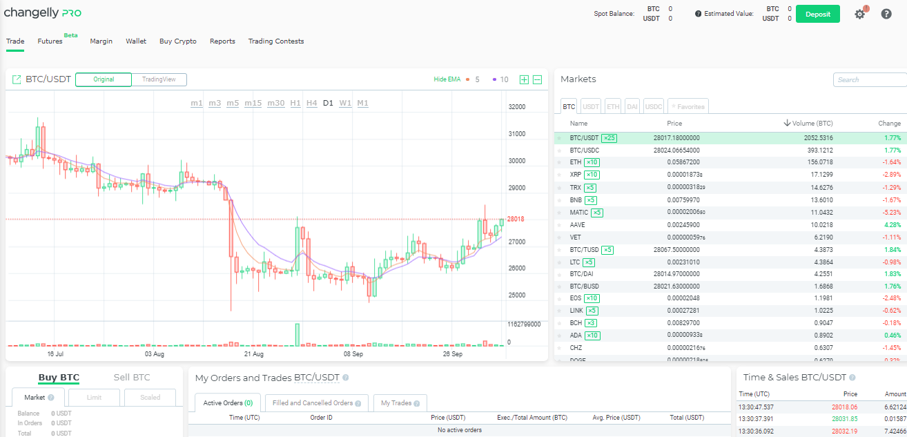 • Margin trading: Changelly PRO allows you to trade on margin.