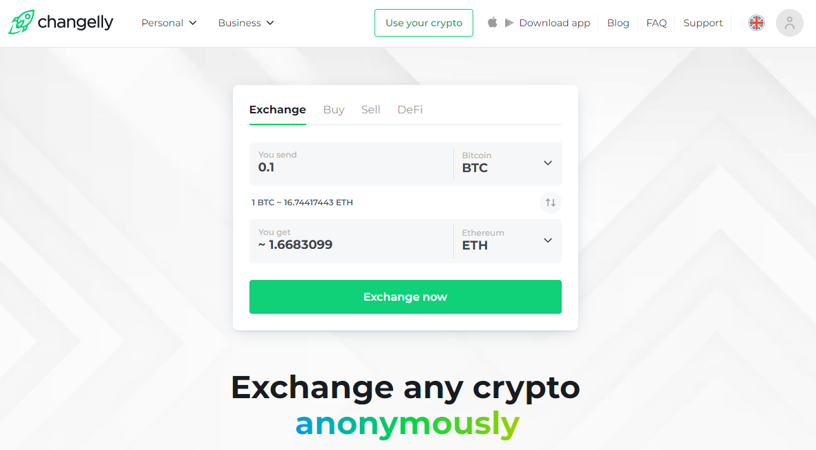 • Changelly is an instant exchange that allows users to purchase crypto without creating an account.