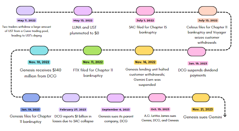 The downfall of Digital Currency Group and Genesis began in 2022, as multiple events triggered a series of collapses across the crypto market.