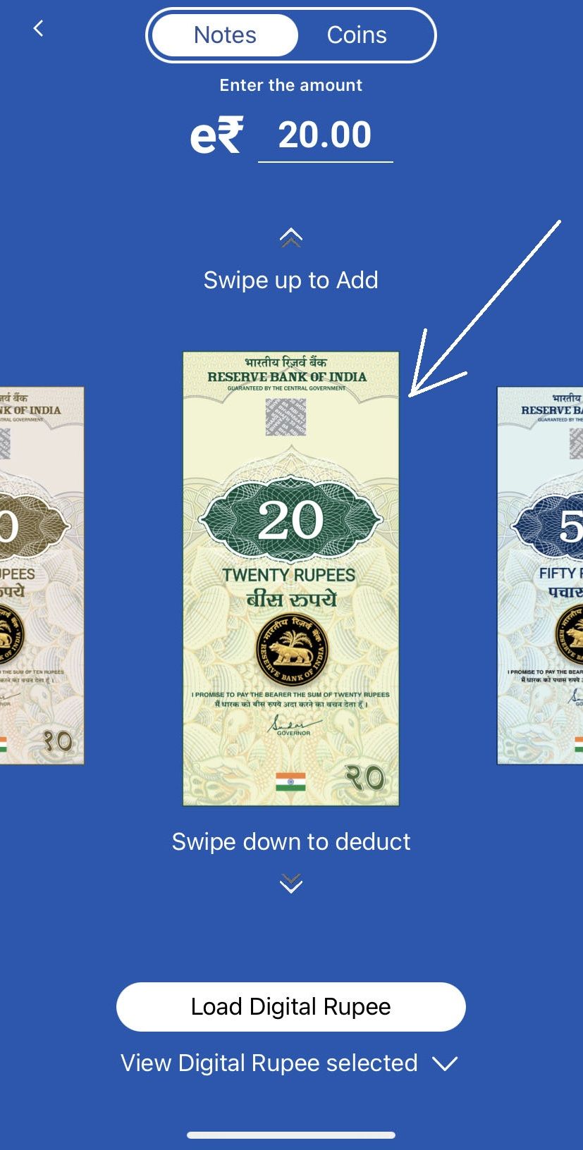 The digital rupee has the same denominations as those you are familiar with in real life — the same physical currency denominations. You get coins of 50 paise (₹0.50) and ₹1 and then tokens of ₹2 all the way up to ₹500.