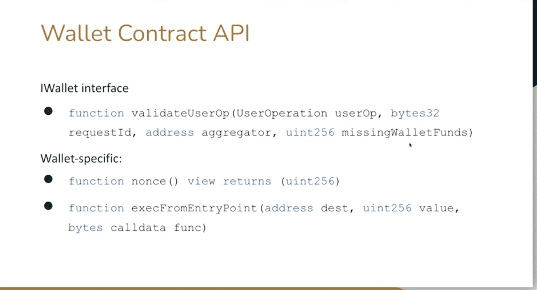 The Entry Point contract calls a validateUserOp function to recognize and identify the UserOp with the contract wallet. The smart contract account (wallet) should implement the ExecuteUserOp function to ensure that the transaction concludes.