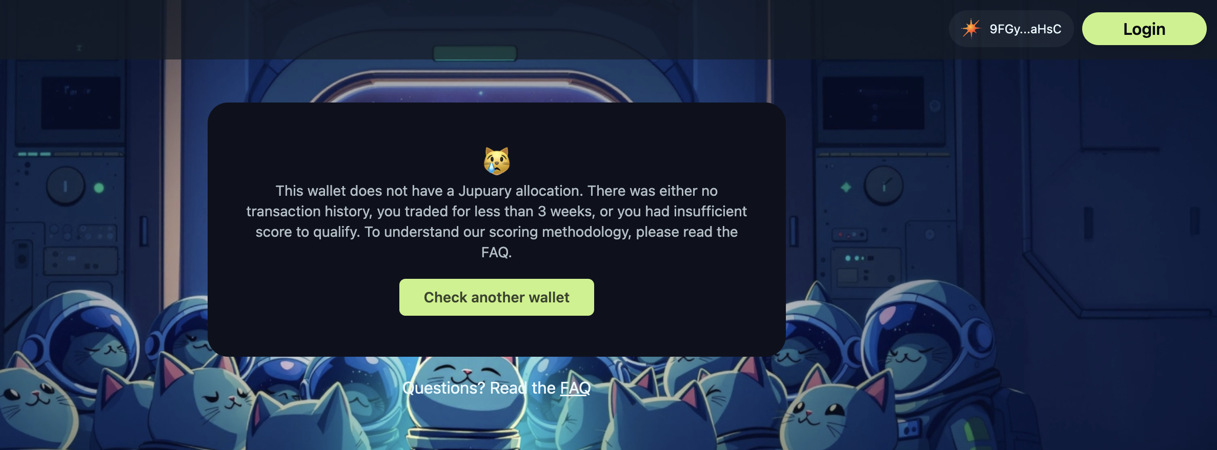 - Once your wallet is connected, the system will automatically check if you qualify for the Jupiter airdrop.