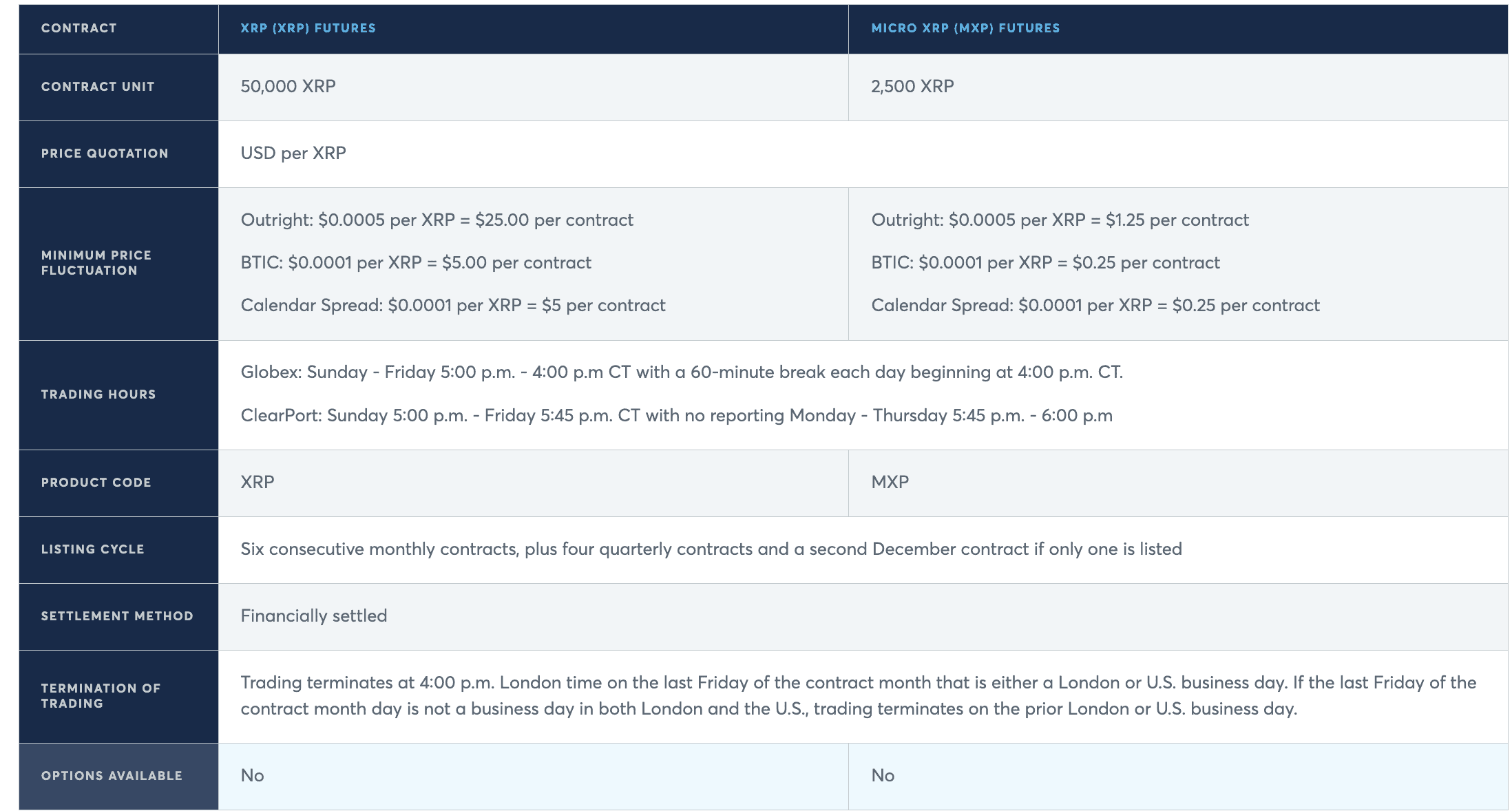 CME offers two XRP futures contracts: