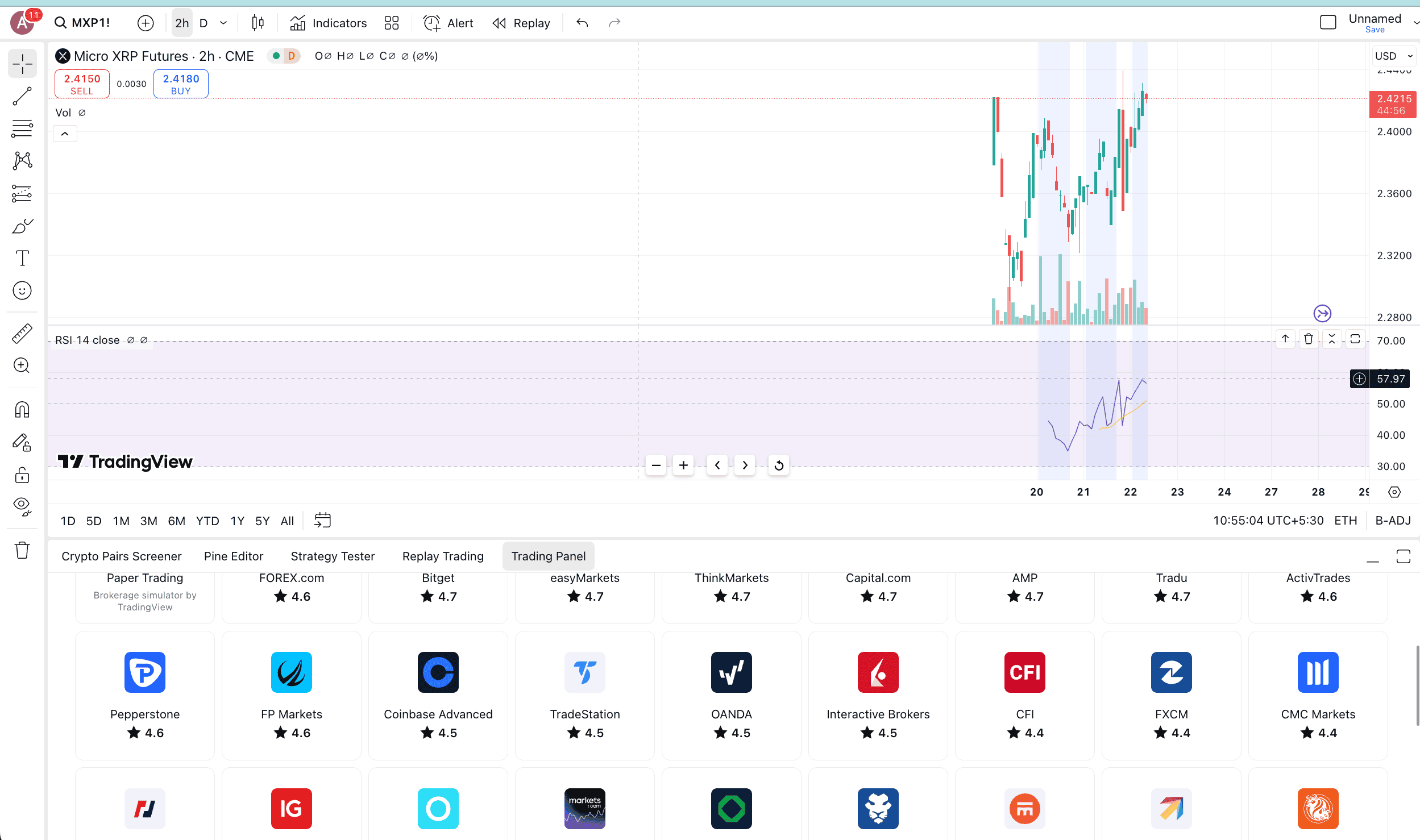 Quick tip: If you are tracking the price of XRP futures, XRP, or MXP (Micro XRP) using TradingView, you can directly place a trade from the interface by selecting and logging into the broker of choice, provided you already have an account.