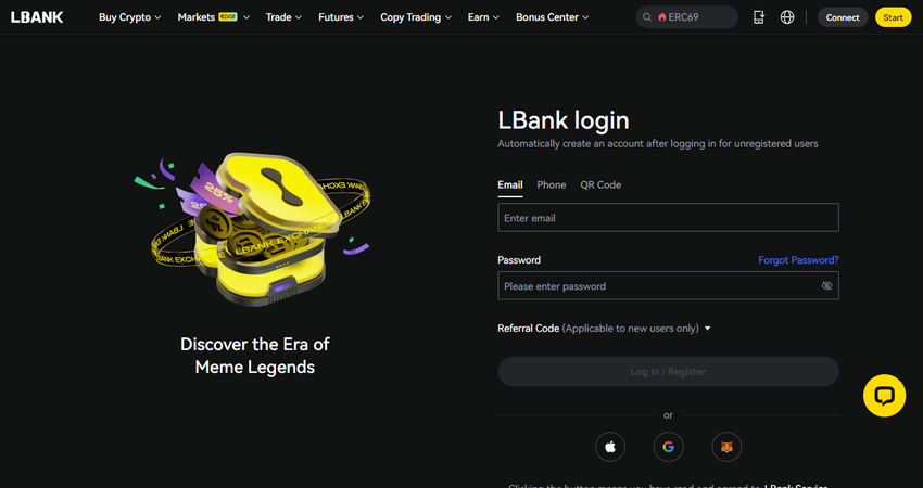 - Register on LBank using your email or phone number.
