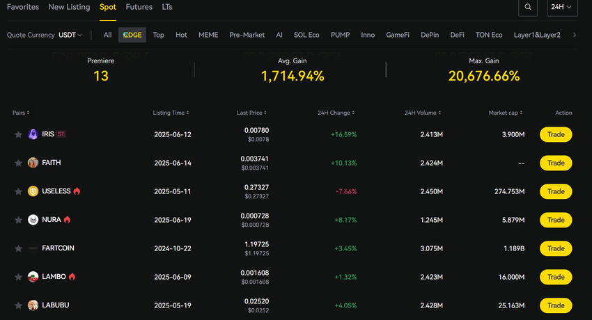 Sponsored SponsoredLBANK claims that EDGE applies a rigorous selection process using a mix of on-chain DEX data, AI-based trading signals, and community traction metrics to screen new tokens. All listed assets receive their own USDT spot market with deep liquidity, and some may graduate to futures trading soon after listing.