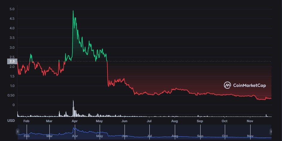 During the ICO, the price was set at $0.16. LOKA held a stable price range in 2021 until it hit its peak on April 2, 2022, when the price shot up to $5.37. Soon after, the price continued a steep downtrend with another blow to its value between May and June 2022. LOKA hit its all-time low of $0.26 on Nov. 13, 2022.