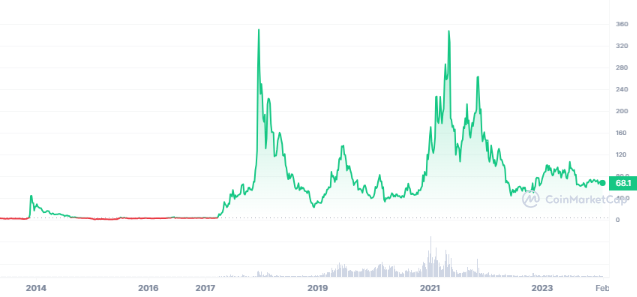 Additionally, despite reaching an all-time high of over $400 in 2021, LTC has yet to break the landmark since. The coin has shown support at about $50 and resistance at around $100.