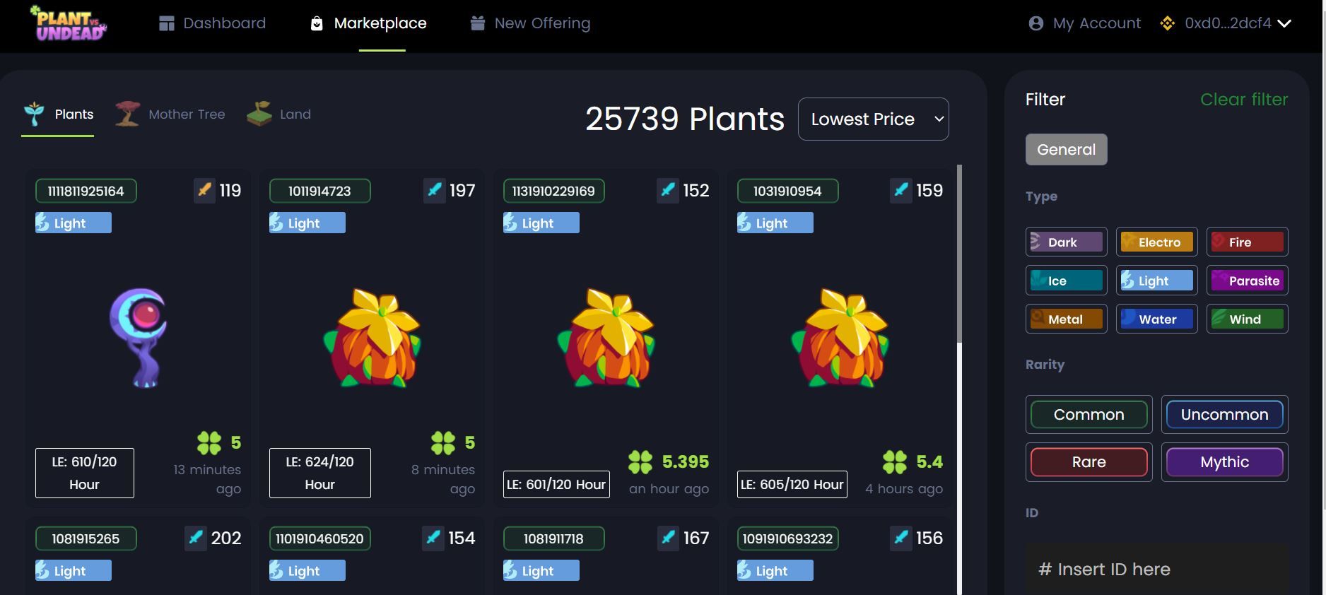 A few PVU tokens will be needed to be exchanged into Light Energy (LE) tokens. Perhaps it’s a good idea to login to the Plant vs. Undead marketplace and to see the current costs for an NFT plant in the game.
