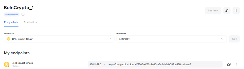 - Get your endpoint address. Basically, API endpoints to blockchain nodes work not unlike URLs on the Internet. Thus, you just need to choose the blockchain network you would like to use (Bitcoin, Ethereum, Polygon, and so on), the type of network (mainnet or testnet), and authorize the creation of an API endpoint.