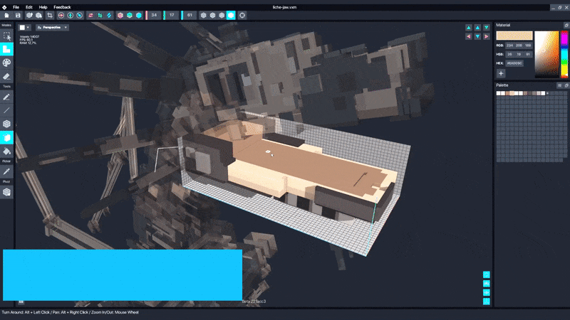 VoxEdit is a computer program that contains a modeler, an animator, and an NFT creator. This makes it a powerful tool to develop games of this kind. Voxels are the tiniest element of visual design. You can use them to create the items that populate the world.
