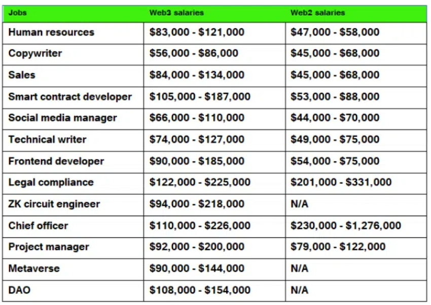 Web2 vs. web3 career salaries