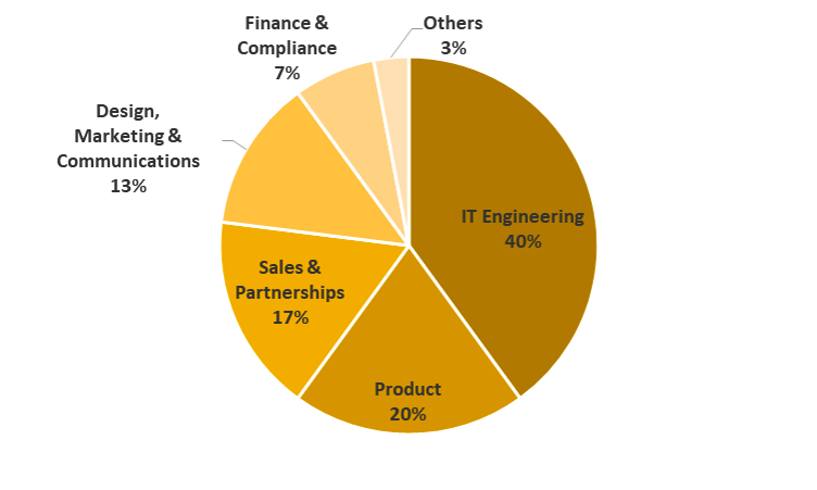 Recruiting faces a significant hurdle with a shortage of candidates possessing essential experience and skills, a challenge exacerbated in web3. Consequently, web3’s time-to-hire often surpasses traditional industries. The CFTE Blockchain job report indicates that the 54 leading blockchain unicorns employ 32,500 people globally, with IT Engineering, including blockchain developer jobs, making up 40% of the positions.