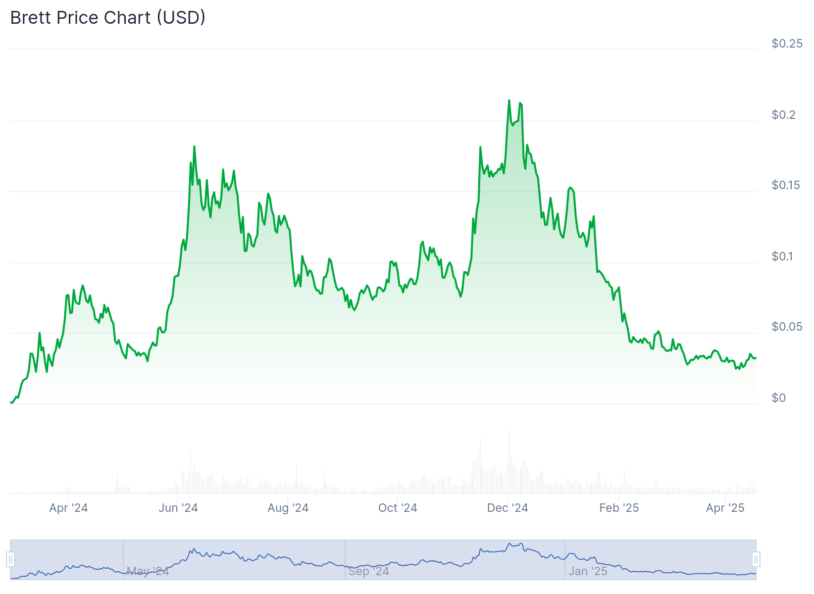 BRETT has a maximum supply of 10 billion and a circulating supply of over 9.9 billion. It became extremely popular in mid to late 2024, amassing a market cap of over $2 billion at its peak.