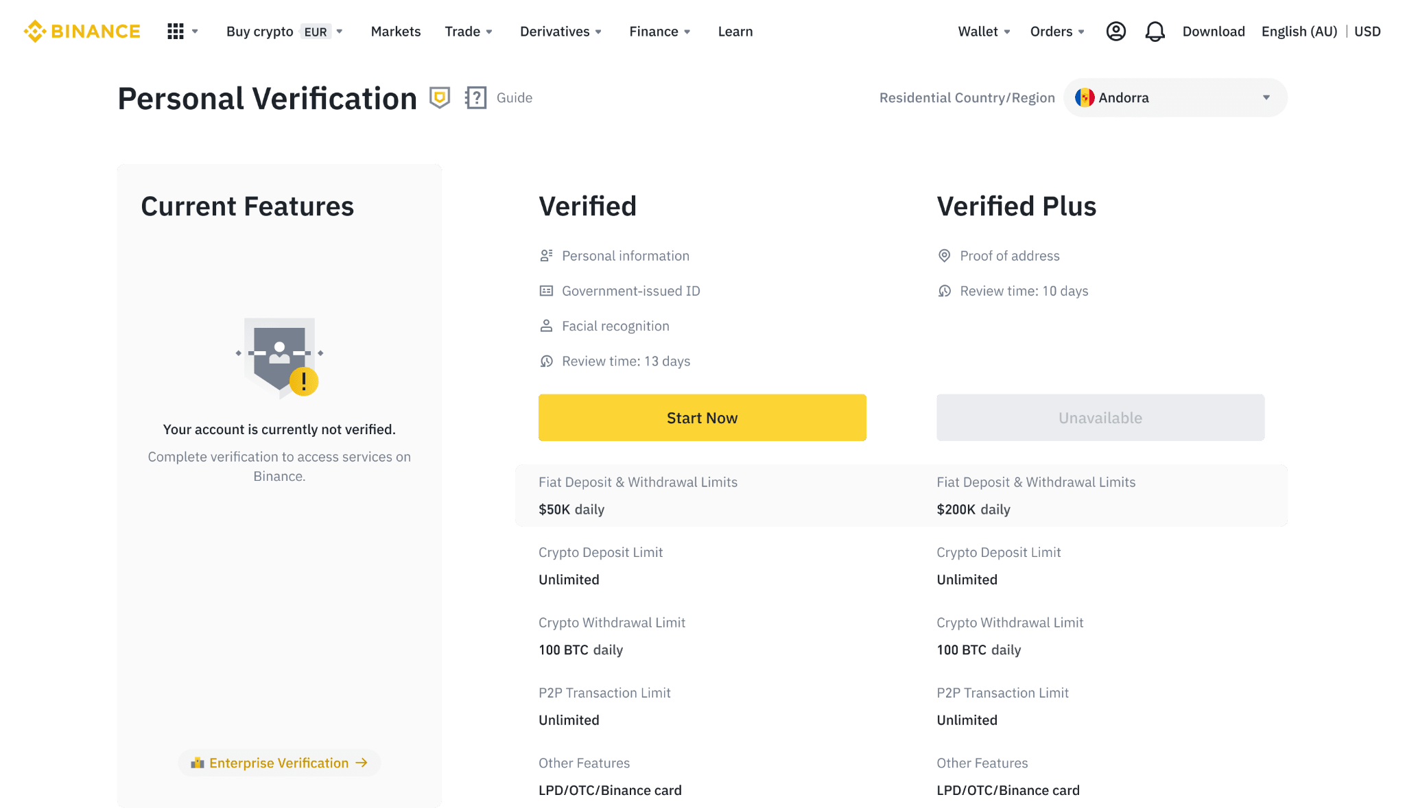 Under each option, you can see the benefits of getting verified. These may vary from country to country. Click start now.