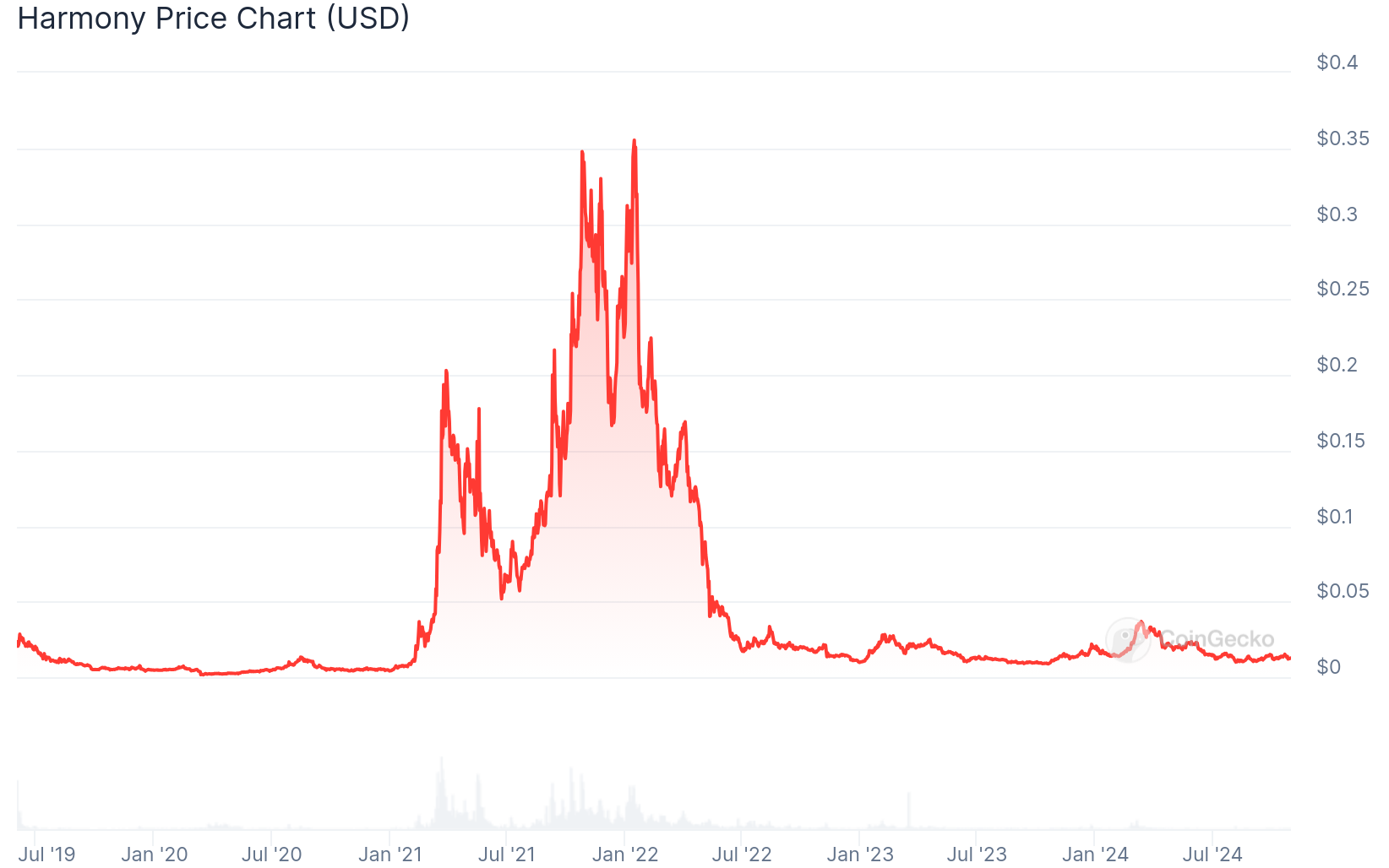 At the beginning of 2021, ONE was trading for about $0.00844. The price rose to $0.199 in March and collapsed on May 19. The price for the ONE coin surged to an all-time high on October 28th. As of 2025, the price has since dropped and is trading sideways.