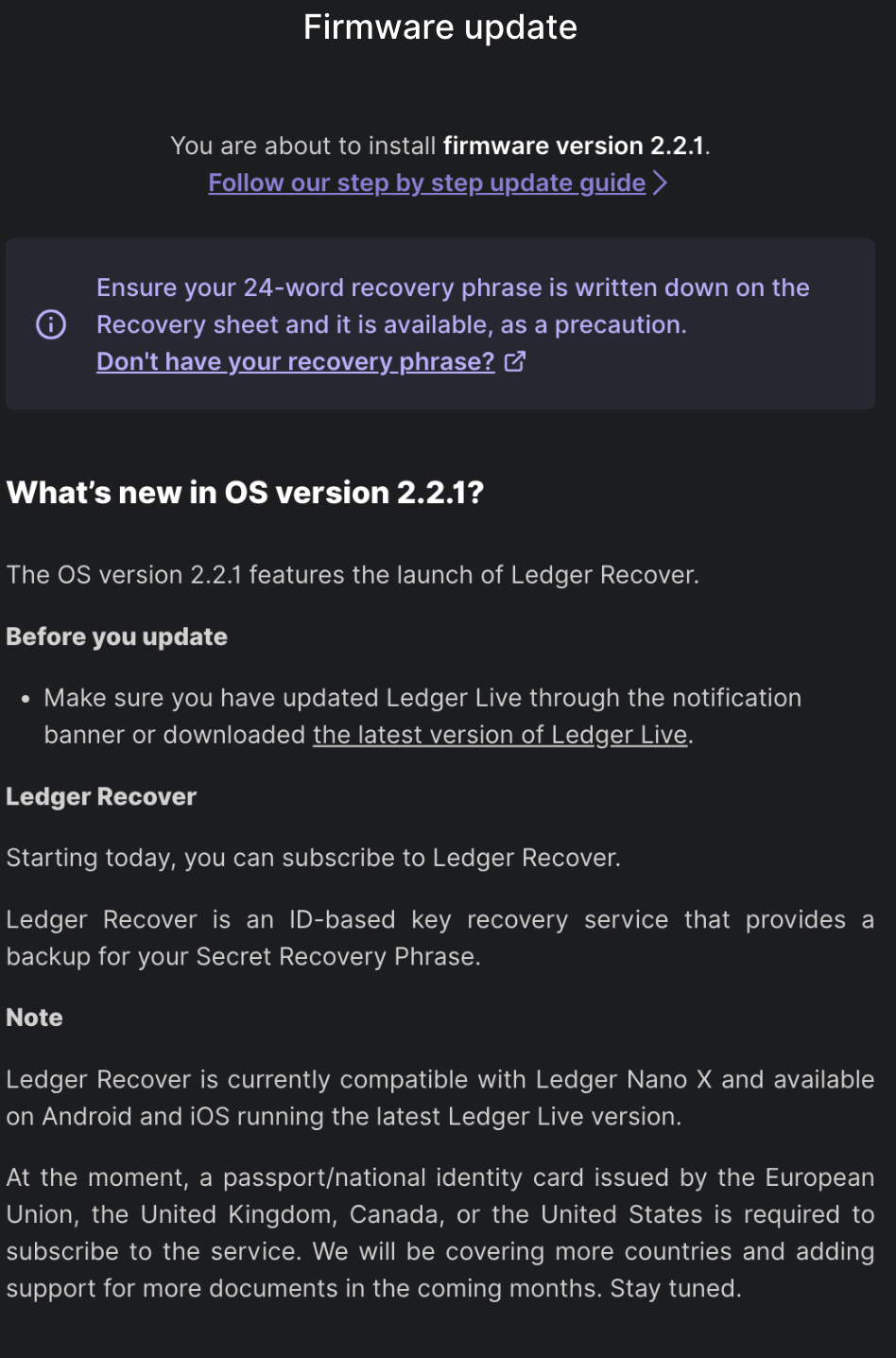 Cold wallet manufacturer Ledger is under fire yet again, this time for releasing a firmware upgrade that includes a subscription-based feature called “Recover.” The feature is facing criticism for granting the company access to customers’ seed phrases, which undermines the purpose of a hardware wallet. The feature comes as a part of the 2.2.1 firmware update.