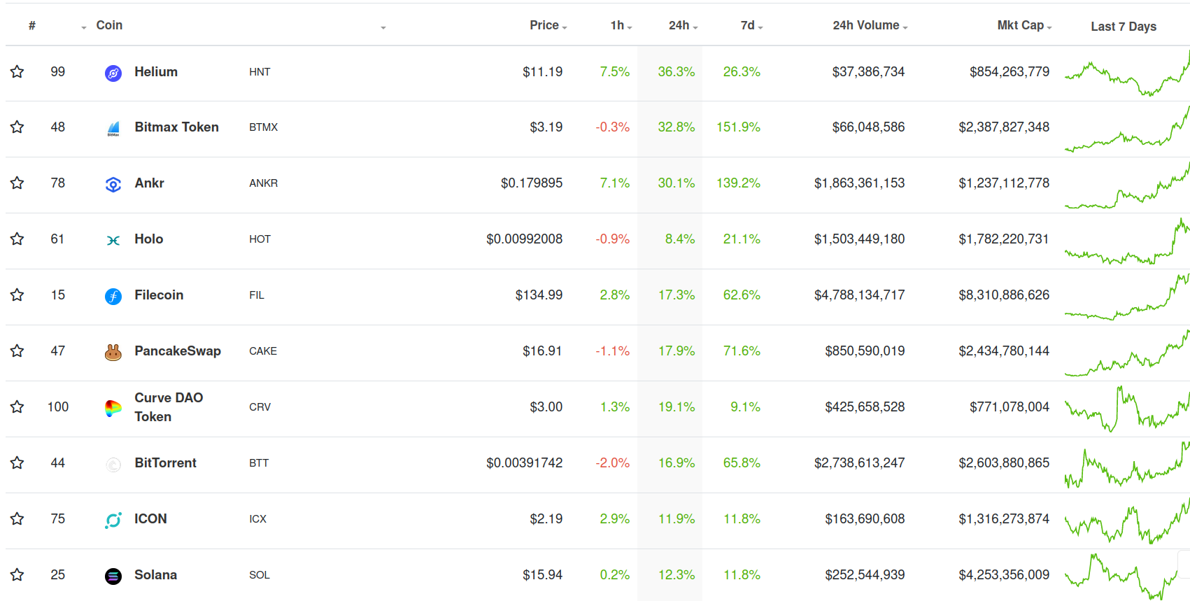 As we close the market roundup of the top movers, notice Filecoin at fifth, below. It had peaked at #2 during the day.