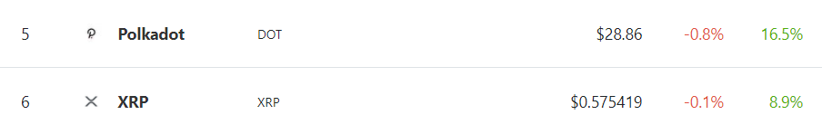 The price action means that both projects are inching closer to the newest fourth place holder Cardano (ADA). It now sits at just a $1.5 billion market cap above DOT.