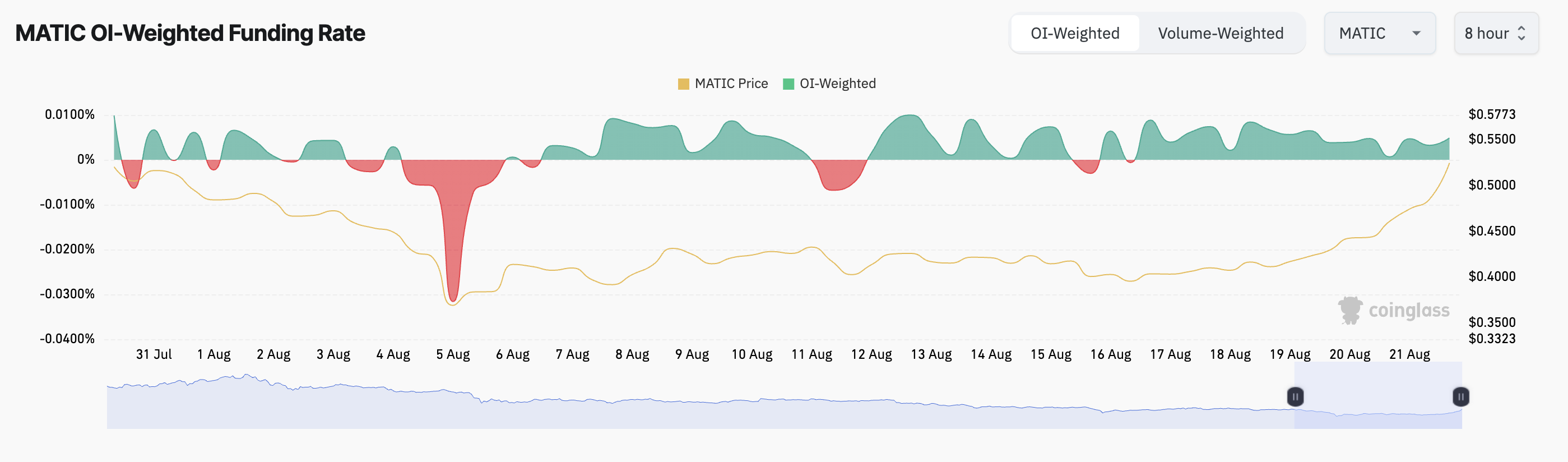 Furthermore, MATIC futures traders have consistently shown demand for long positions. This is reflected in the altcoin’s positive funding rate since August 17, indicating that traders are willing to pay a premium for maintaining bullish positions in the derivatives market.