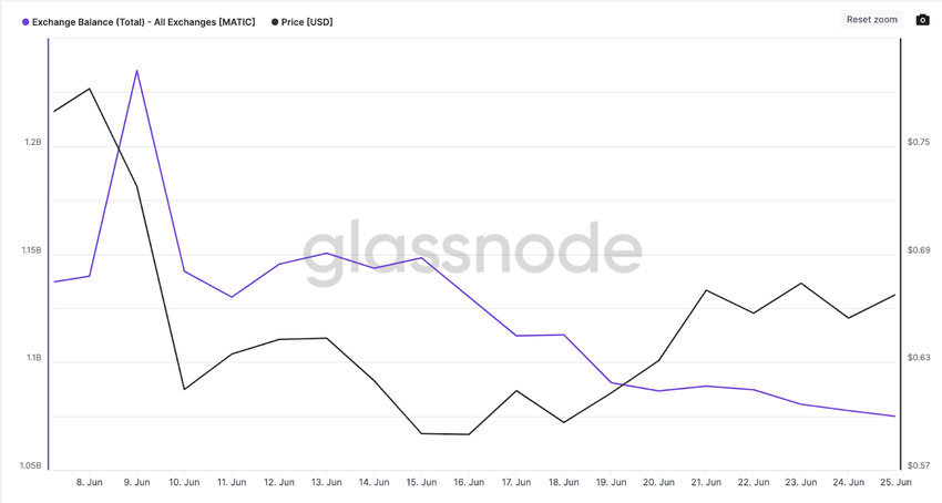 As of June 26, 2023, it sits at 1.074 billion MATIC. The chart below shows how investors moved about 161 million MATIC out of exchanges between June 9 and June 26.